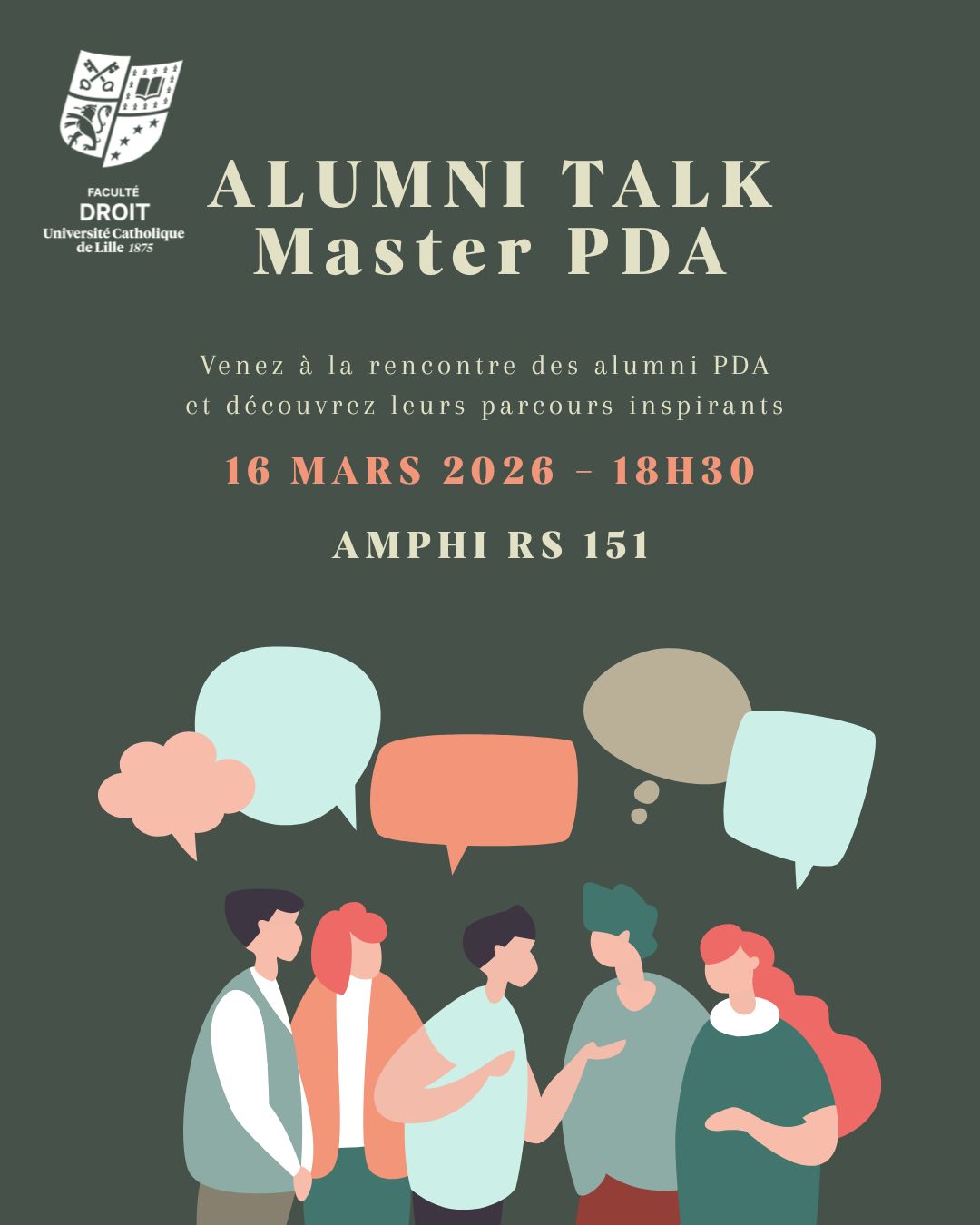 L’objectif est de créer un temps d’échange concret entre diplômés et étudiants actuels du master autour des parcours professionnels, des premières années de collaboration et des trajectoires en droit des affaires.