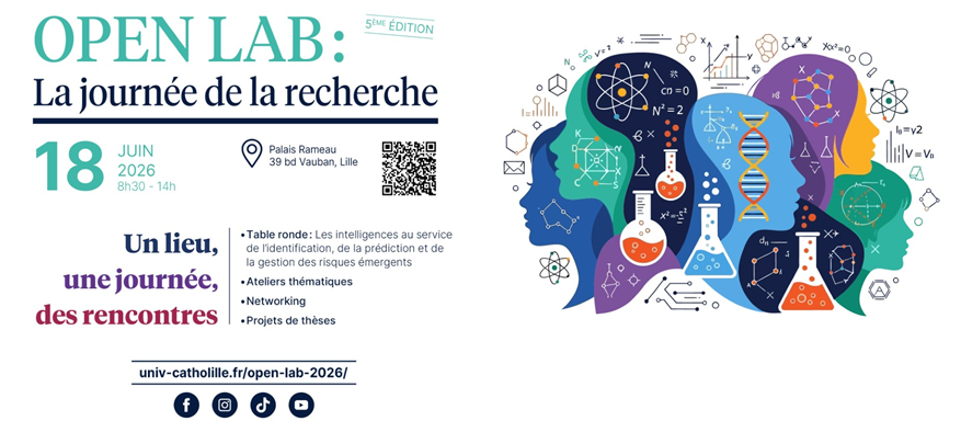 La journée de la recherche de l’Université Catholique de Lille aura lieu cette année le 18 juin 2026 au Palais Rameau, sur le thème des intelligences au service de l’identification, de la prédiction et de la gestion des risques.
